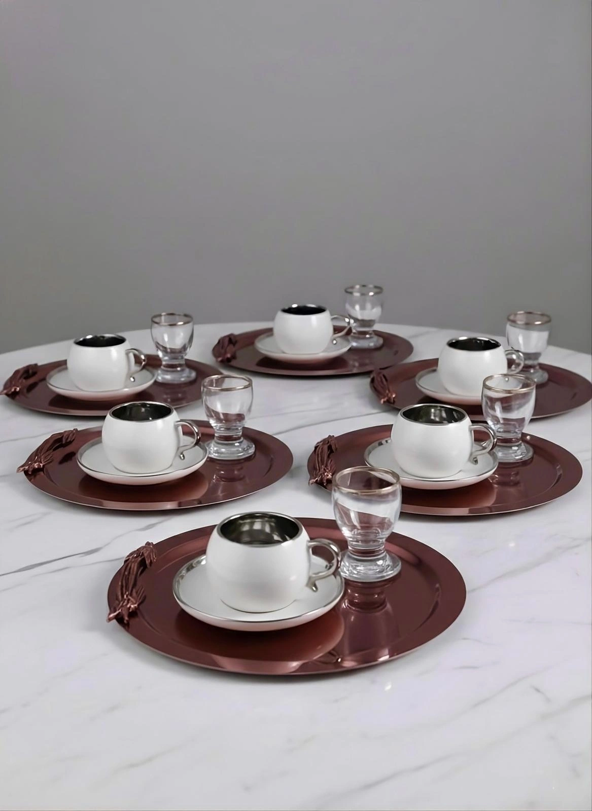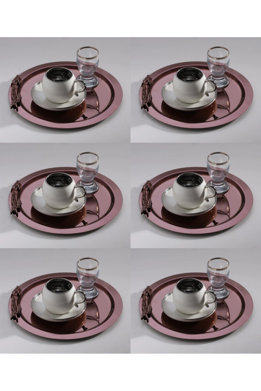 201 kaliteli paslanmaz çelikten üretilmiştir.; Paslanmaz özelliği sayesinde uzun ömürlü kullanım sunar ve kolaylıkla temizlenebilir.; ; Ürünlerimiz 6 Adet Tepsi olarak gönderilmektedir.; ; Farklı renk seçenekleri ile sunulan bu tepsiler boya yöntemi ile değil, Pvd ile kaplanmıştır.; ; 21x21 cm ölçüleri, sunumlarınızı rahatça sunabileceğiniz bir alan sağlar.; ; Şık tasarımı, hem günlük hem de özel davetlerde göz alıcı sunumlar yapmanıza yardımcı olur.; ; Doğru temizleme yöntemi, paslanmaz çeliğin yapısı ile birleştiğinde uzun süre kullanım sağlanmaktadır ; Ürünlerimizi kullanırken kimyasal ve etken madde temasından kaçınınız.; Optik bir bez yardımıyla ürünlerimizi kolayca silip temizleyebilirsiniz ; Dal Figürlü Bakır Renk Kahve Sunum Servis Tepsisi.; 6 Adet gönderilmektedir.; Şıklığı ve Dayanıklılığı Bir Arada Sunan Paslanmaz Çelik Tepsi (6 Adet) Mutfakta zarafeti ve kaliteyi bir arada arayanlar için özel olarak tasarlanan bu yuvarlak tepsi seti, 21x21 cm ölçüsünde, yüksek kaliteli paslanmaz çelikten üretilmiştir.; Diğer çelik tepsilere kıyasla daha parlak, çizilmeye karşı dayanıklı yüzeyi ile uzun ömürlü kullanım sağlar.; Suya dayanıklı yapısıyla hem günlük kullanım hem de misafir sunumları için idealdir.; Ürün Özellikleri: •6 Adet Yuvarlak Tepsi •Parlak ve Çizilmez Paslanmaz Çelik •21x21 cm ölçü •Kulplu tasarımıyla kolay taşıma •Suya ve neme karşı dayanıklı •Gümüş, Gold ve Desenli renk seçenekleriyle sunulur Modern ve zarif tasarımıyla sofralarınıza ışıltı katarken, dayanıklı yapısıyla yıllarca ilk günkü şıklığını korur.; Misafirlerinizi etkilemek ve sunumlarınıza şıklık katmak için ideal bir seçim!