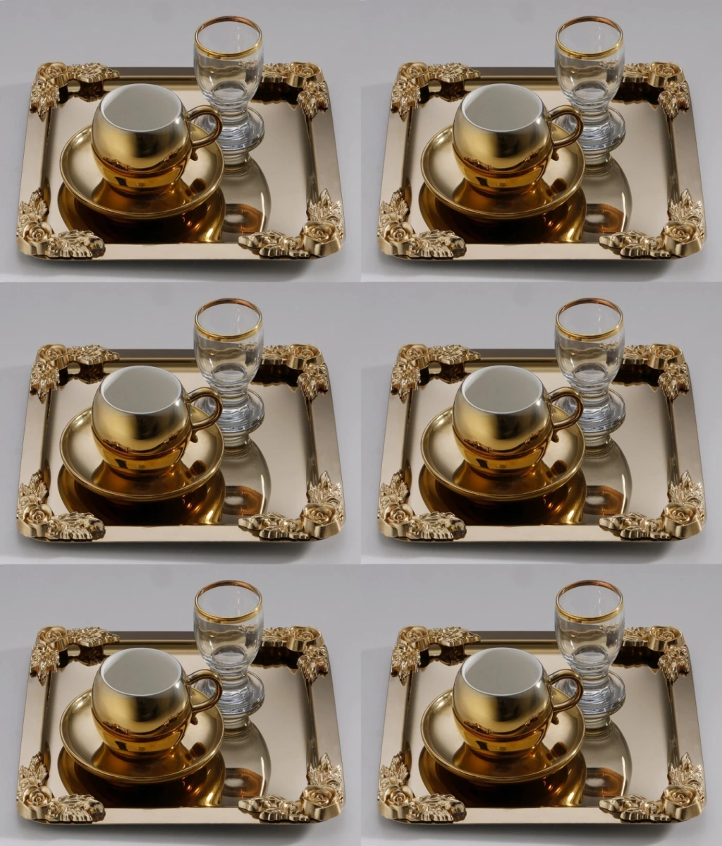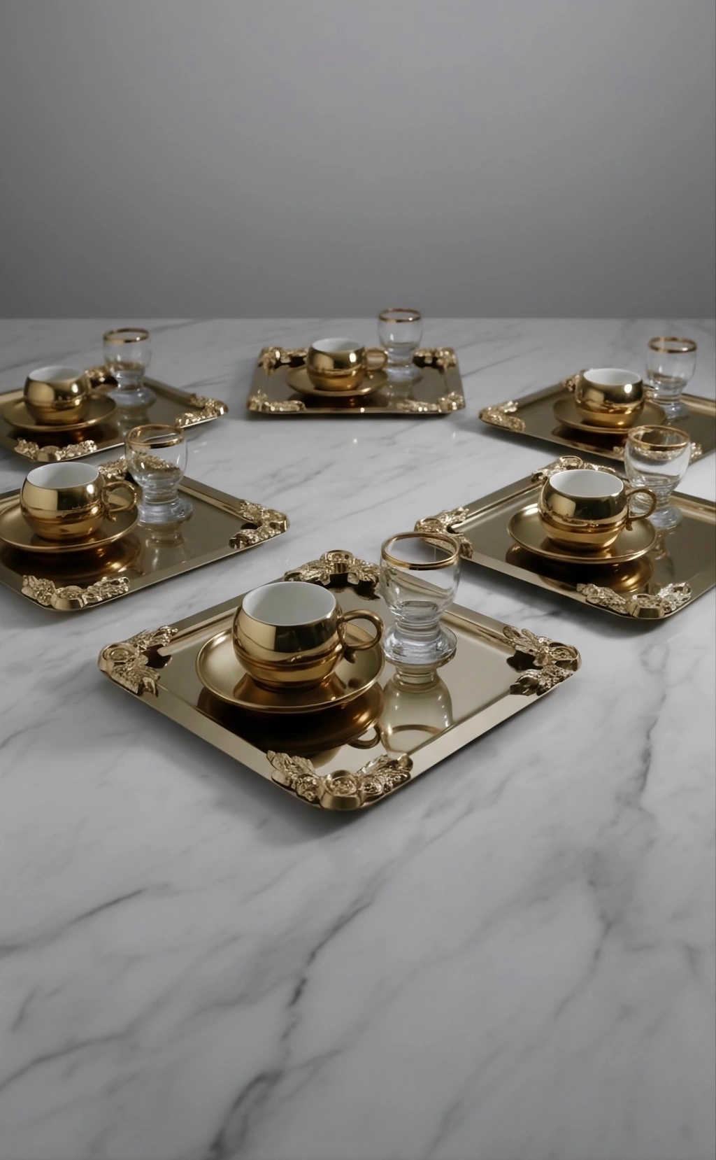 Köşe Tekli Gül Aksesuarlı Paslanmaz Çelik 6 Adet Kare Gold Sunum Servis Tepsisi