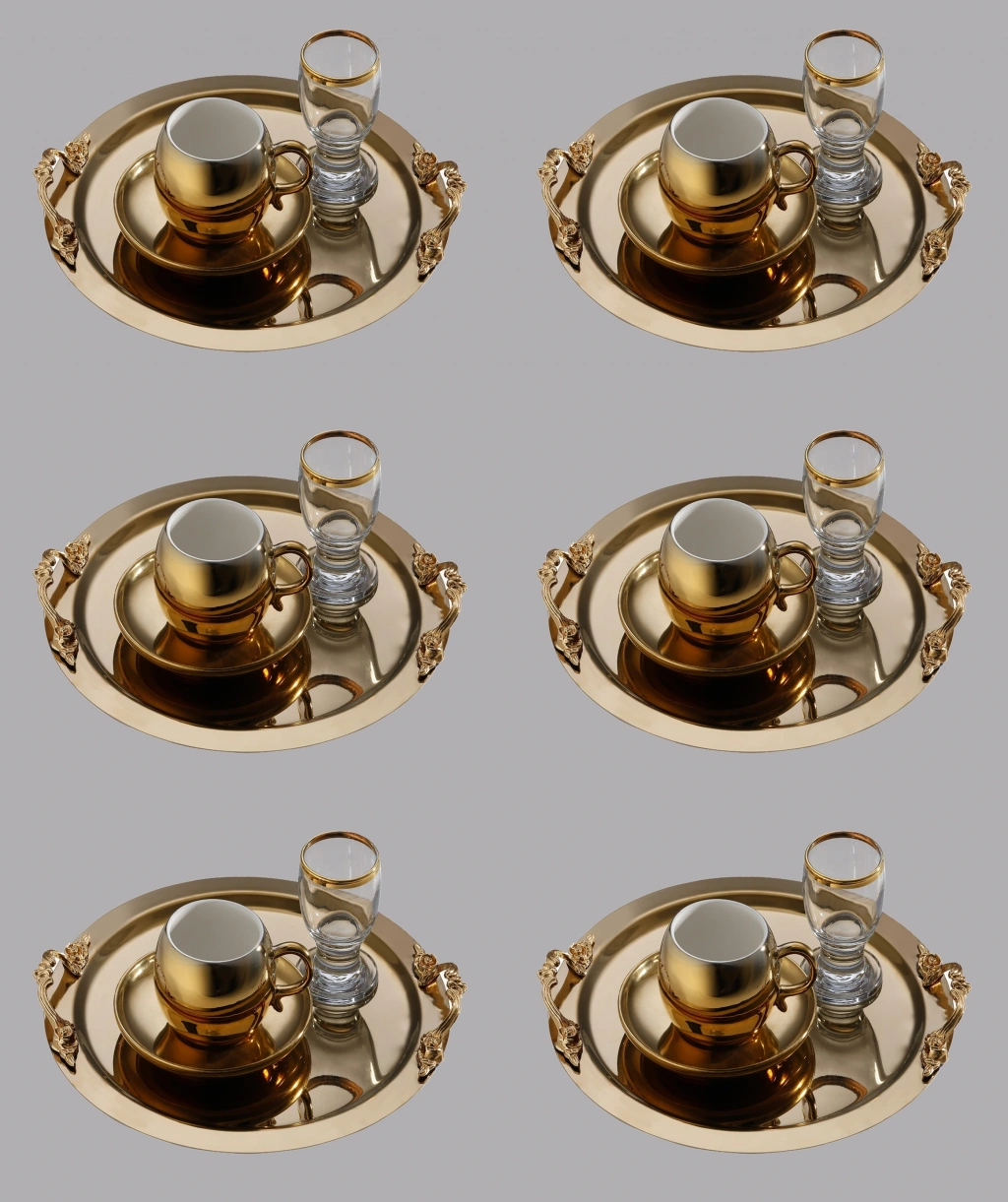 Kulp Aksesuarlı Paslanmaz Çelik 6 Adet Yuvarlak Gold Sunum Servis Tepsisi