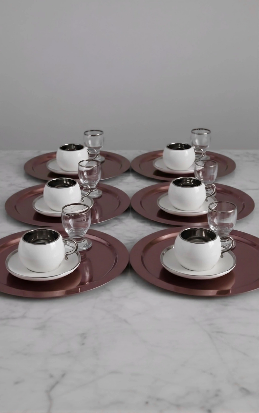 Paslanmaz Çelik 6 Adet Yuvarlak Bakır Sunum Servis Tepsisi