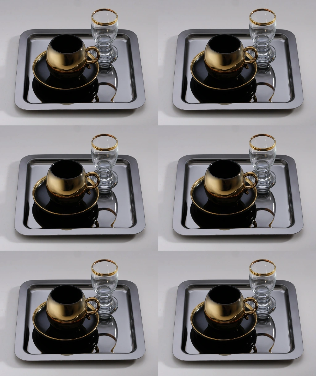Paslanmaz Çelik 6 Adet Kare Siyah Sunum Servis Tepsisi