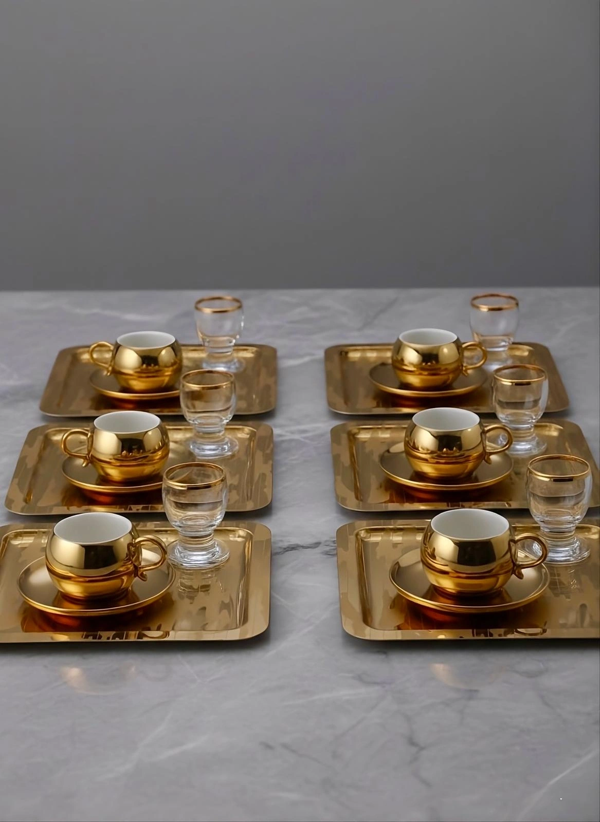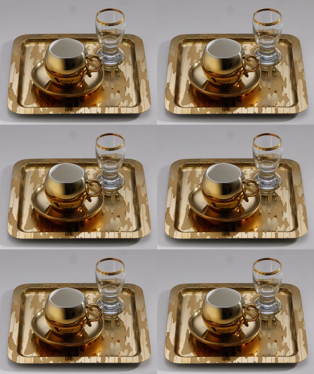 Paslanmaz Çelik 6 Adet Kare Desenli Gold AD-20 Sunum Servis Tepsisi