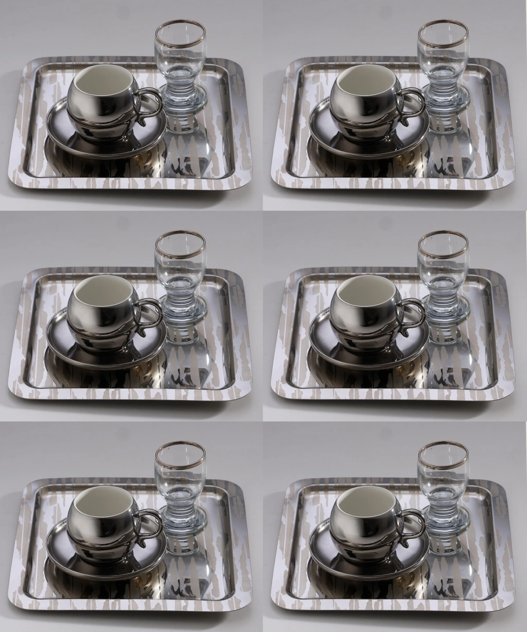 Paslanmaz Çelik 6 Adet Kare Desenli Gümüş AD-20 Sunum Servis Tepsisi