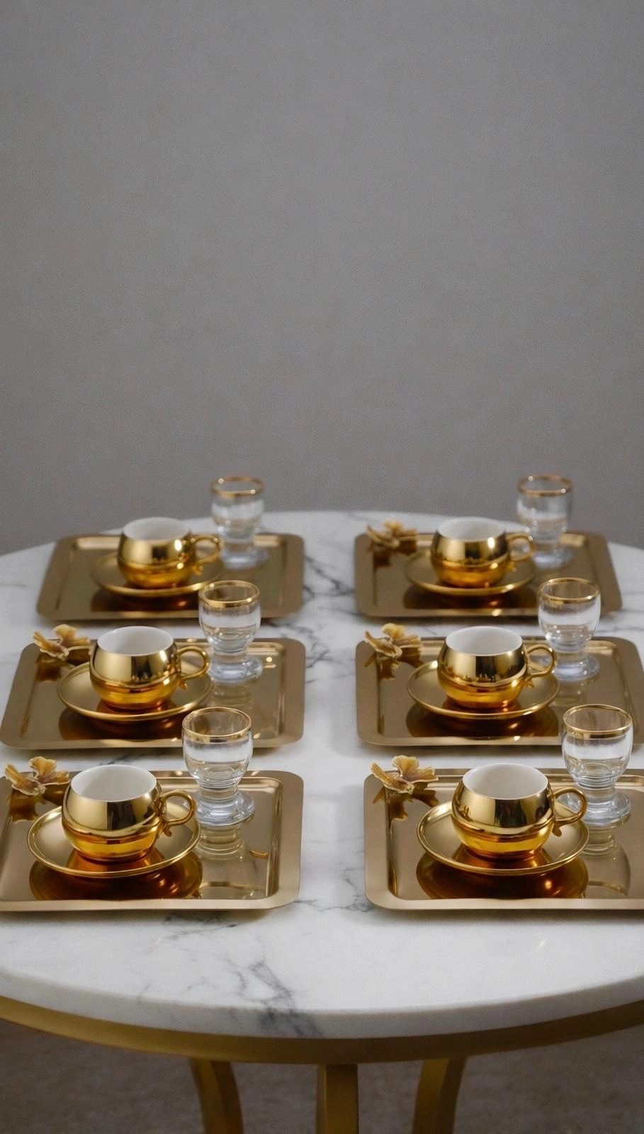 Gold Kelebek Aksesuarlı Paslanmaz Çelik 6 Adet Kare Gold Sunum Servis Tepsisi