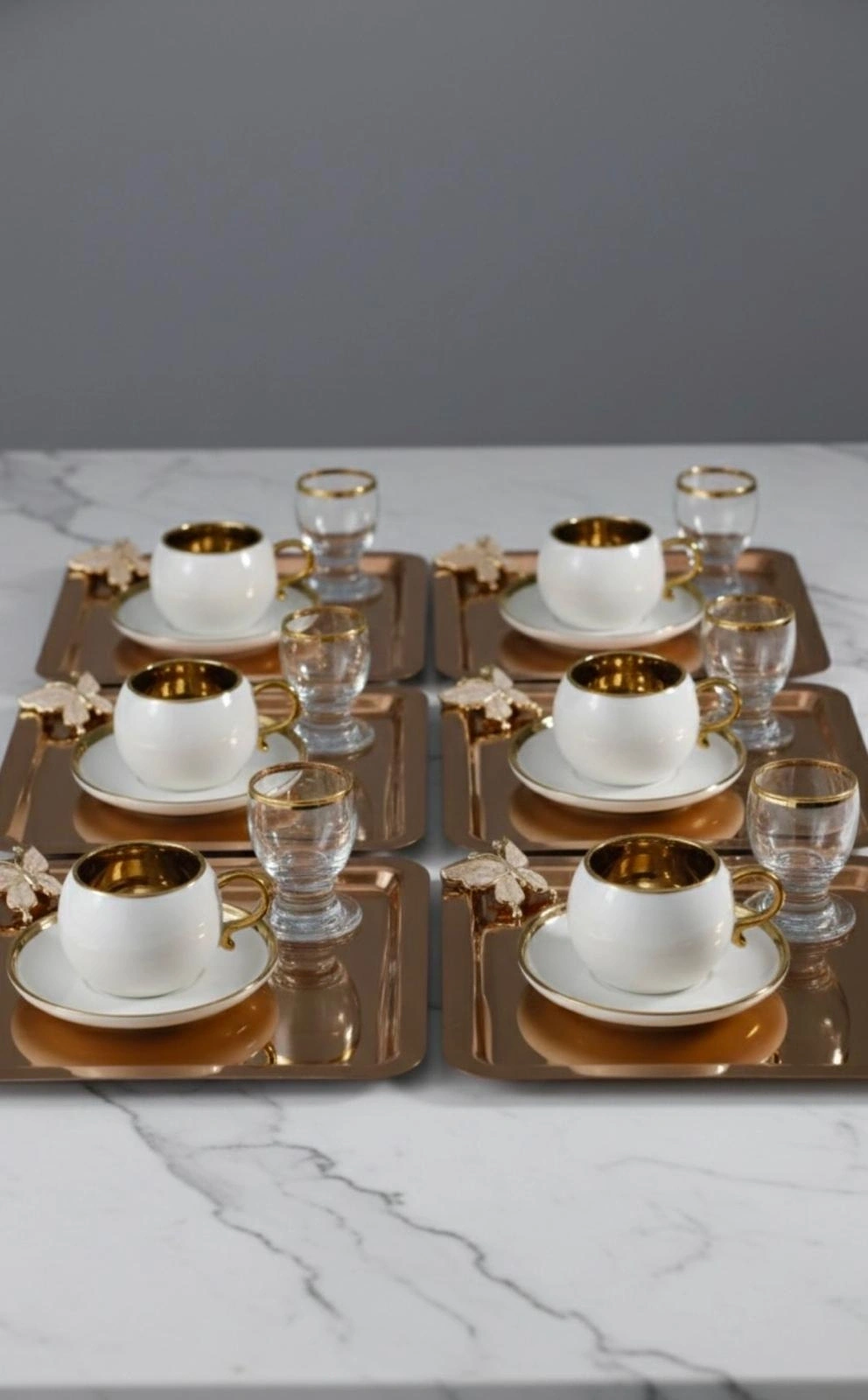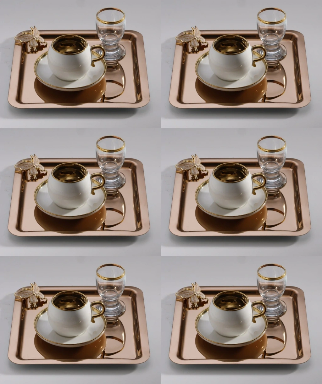 Rose Kelebek Aksesuarlı Paslanmaz Çelik 6 Adet kare Rose Sunum Servis Tepsisi