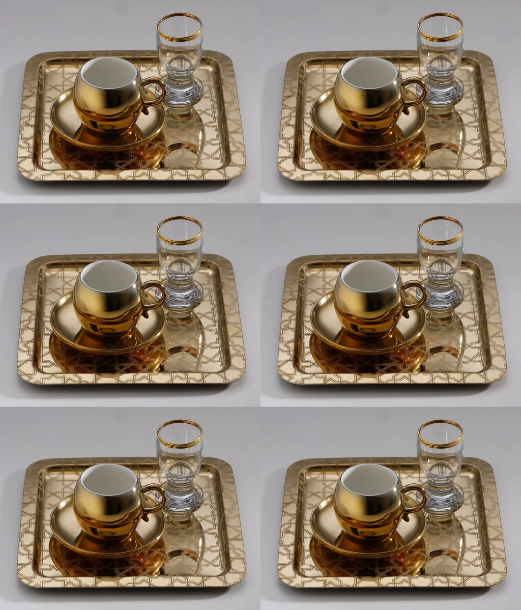 Paslanmaz Çelik 6 Adet Kare Desenli Gold AD-26 Sunum Servis Tepsisi