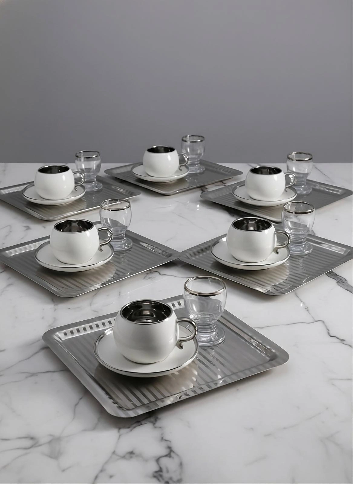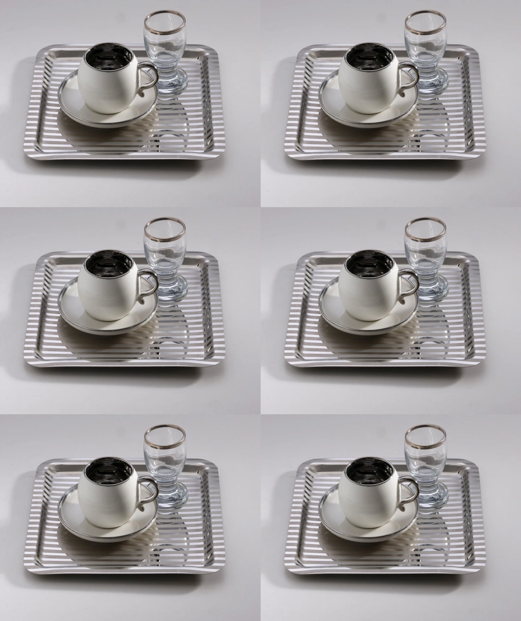 Paslanmaz Çelik 6 Adet Kare Desenli Gümüş AD-15 Sunum Servis Tepsisi