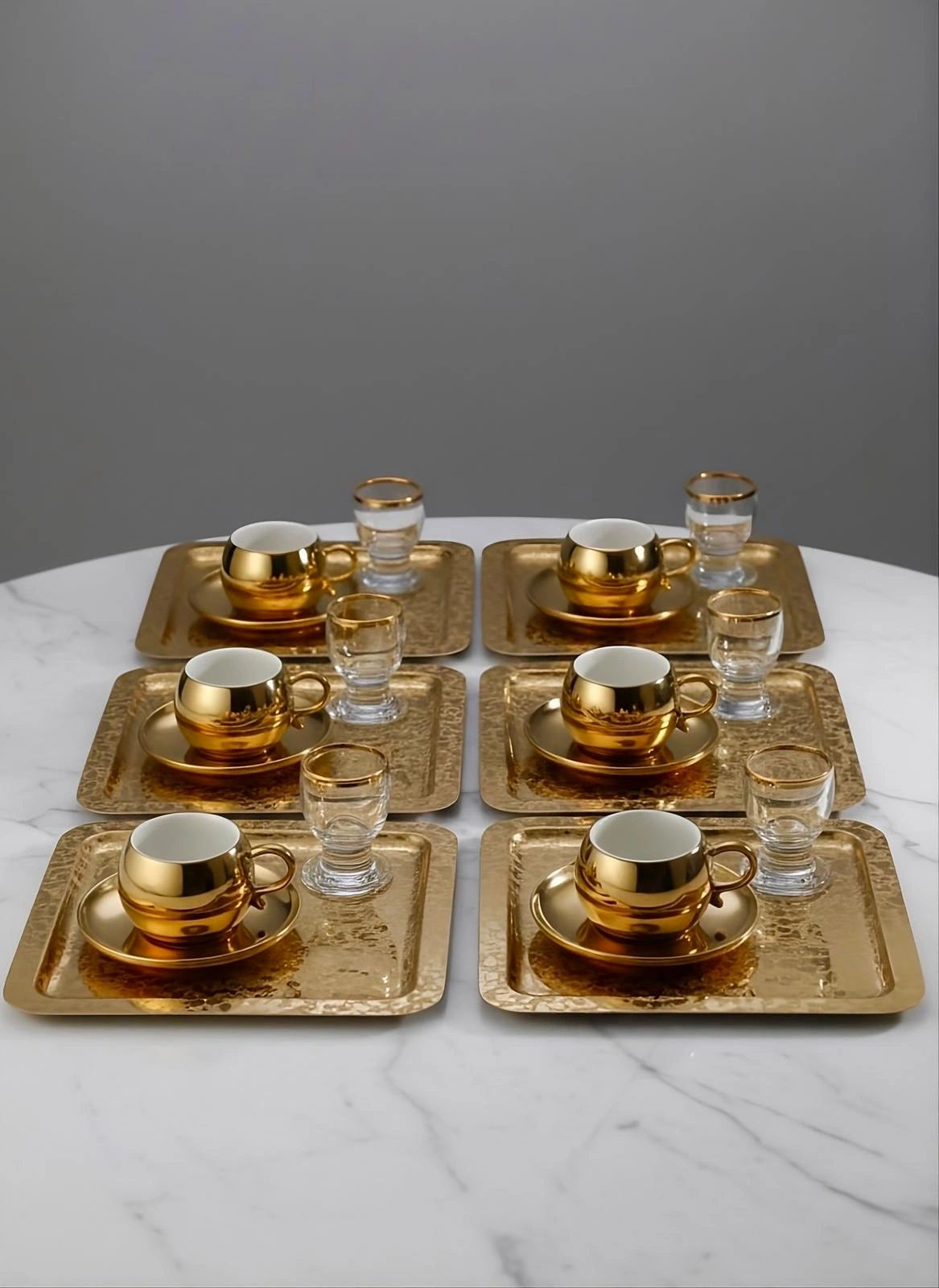Paslanmaz Çelik 6 Adet Kare desenli Gold AD-08 Sunum Servis Tepsisi