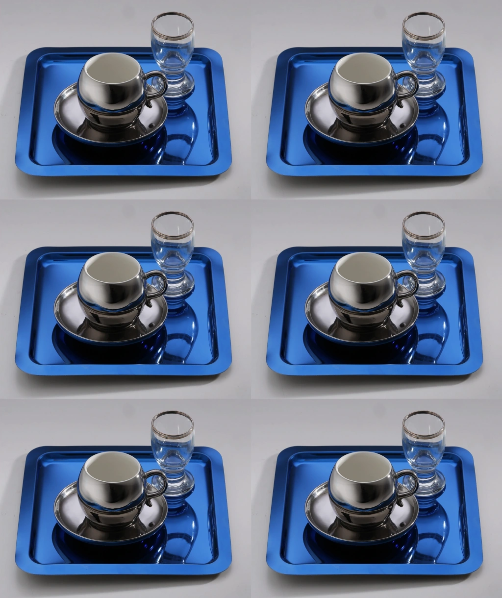 Paslanmaz Çelik 6 Adet Kare Mavi Sunum Servis Tepsisi