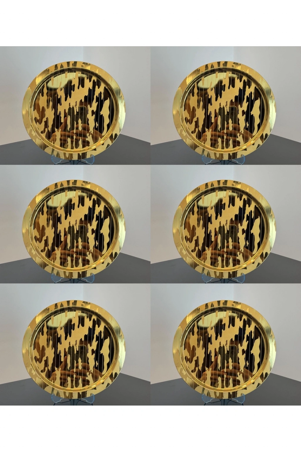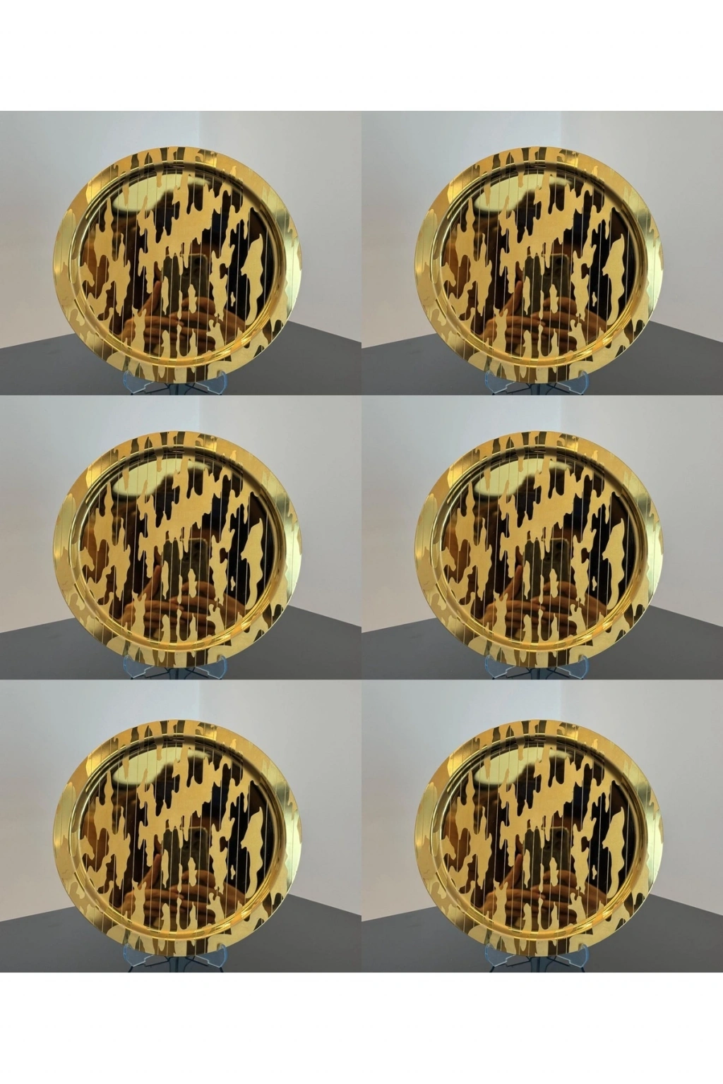 Paslanmaz Çelik 6 Adet Yuvarlak Lüx Desenli Gold AD-20 Kahve, Çay Sunum Servis Tepsisi