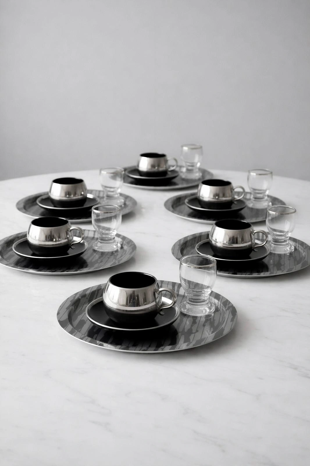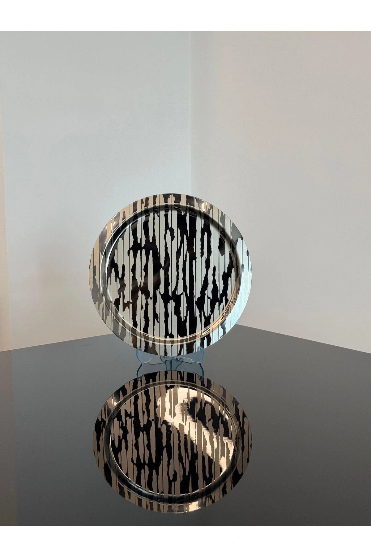 Paslanmaz Çelik 6 Adet Yuvarlak Lüx Desenli Siyah AD-20 Kahve, Çay Sunum Servis Tepsisi