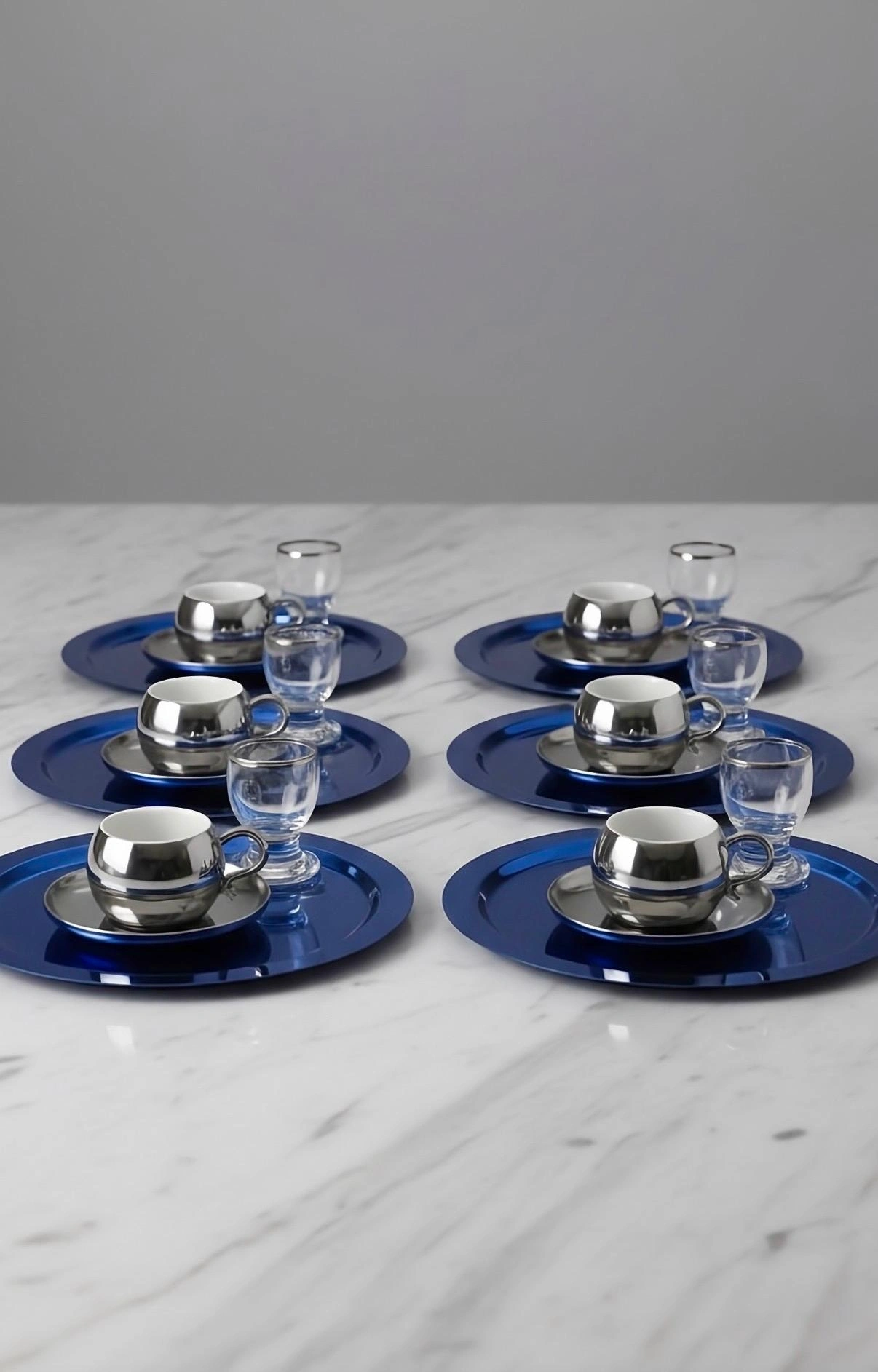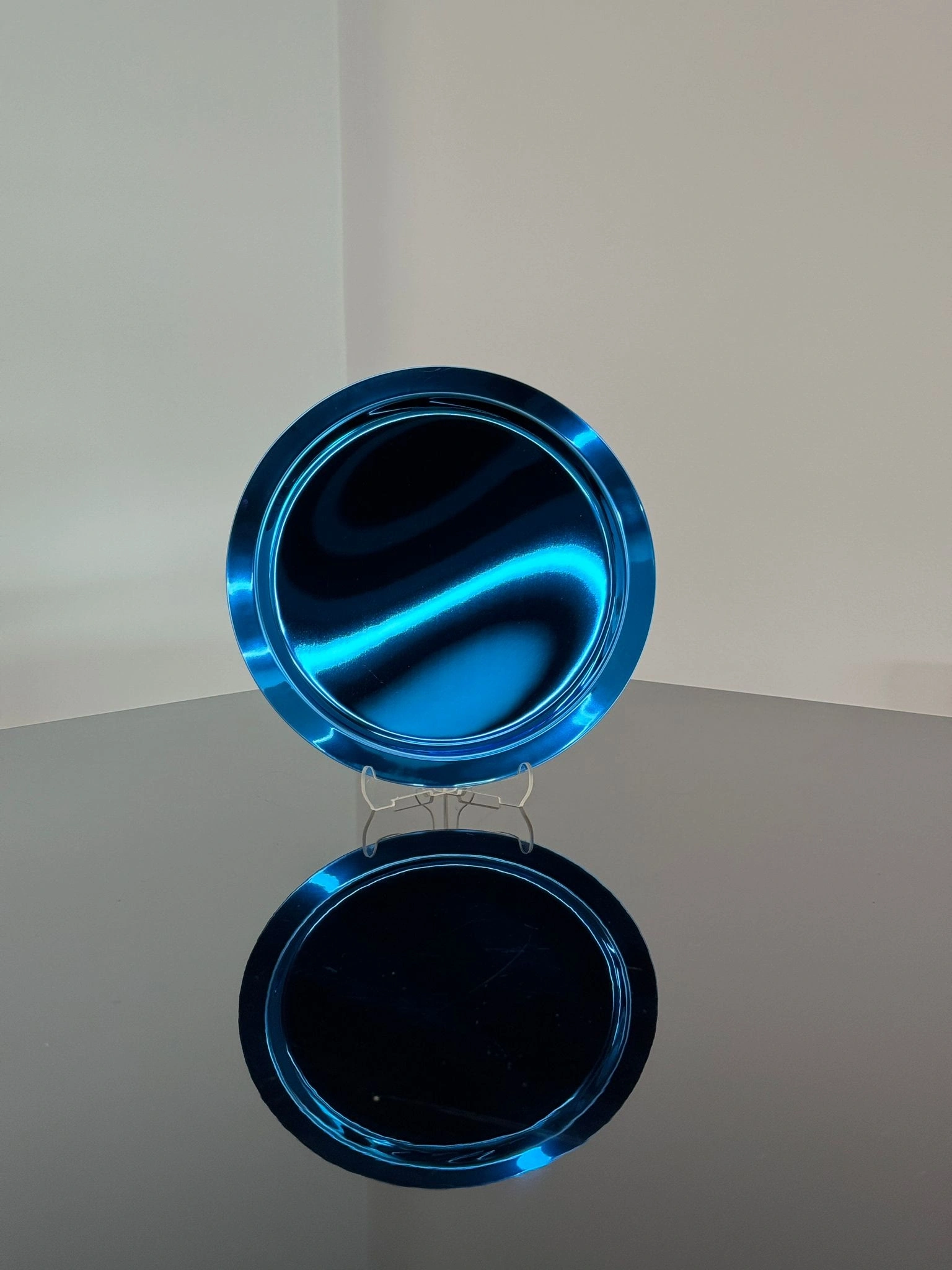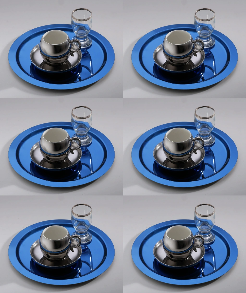 Paslanmaz Çelik 6 Adet Yuvarlak Mavi Sunum Servis Tepsisi