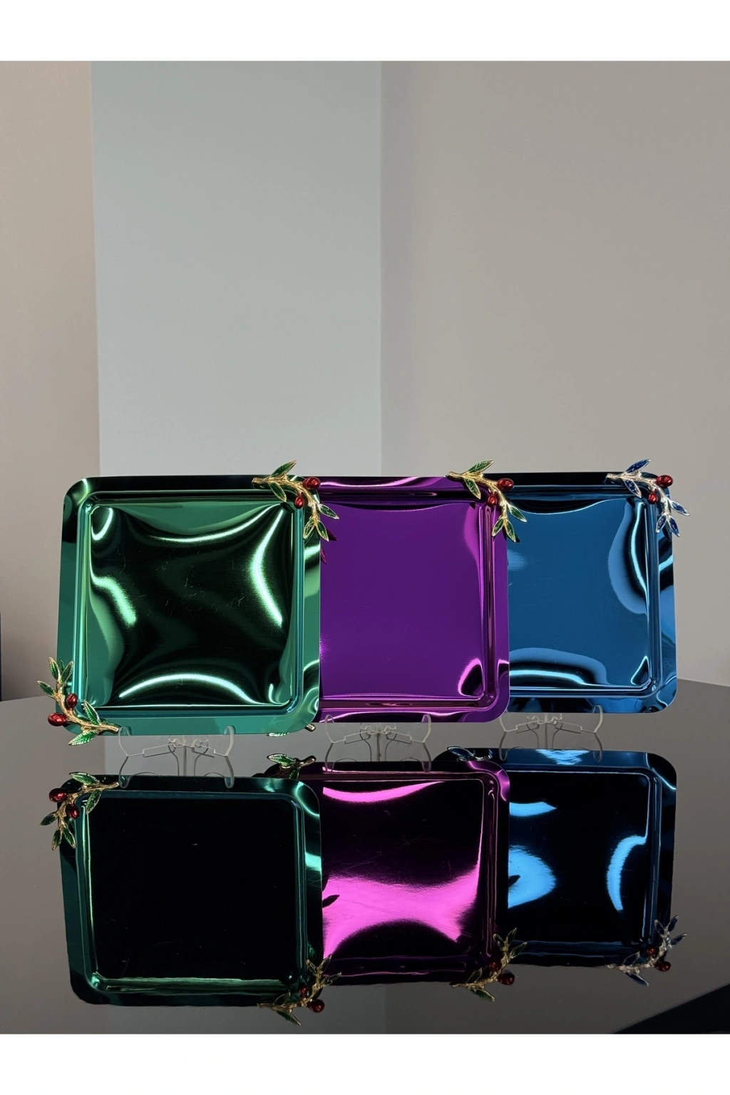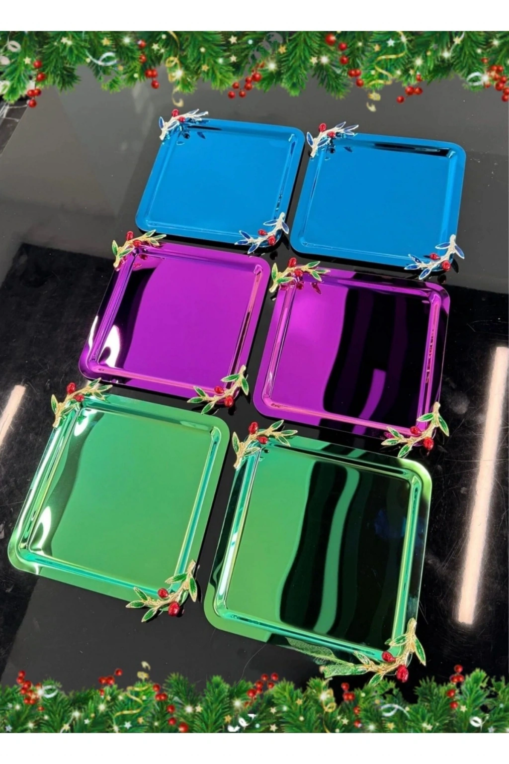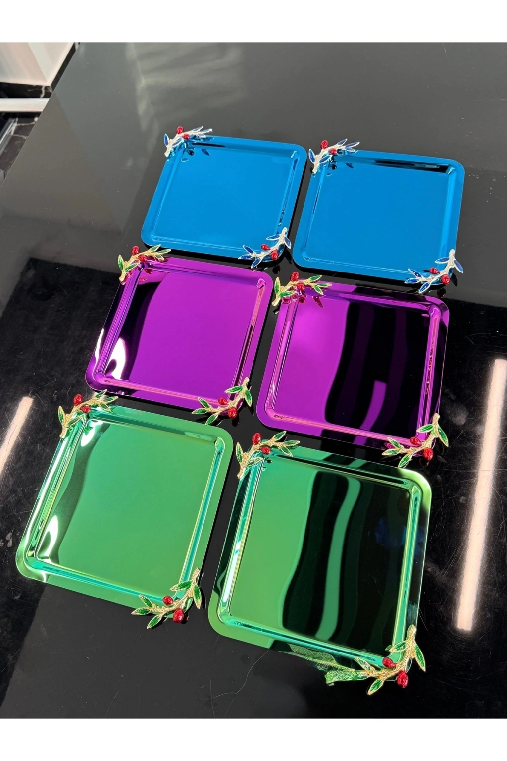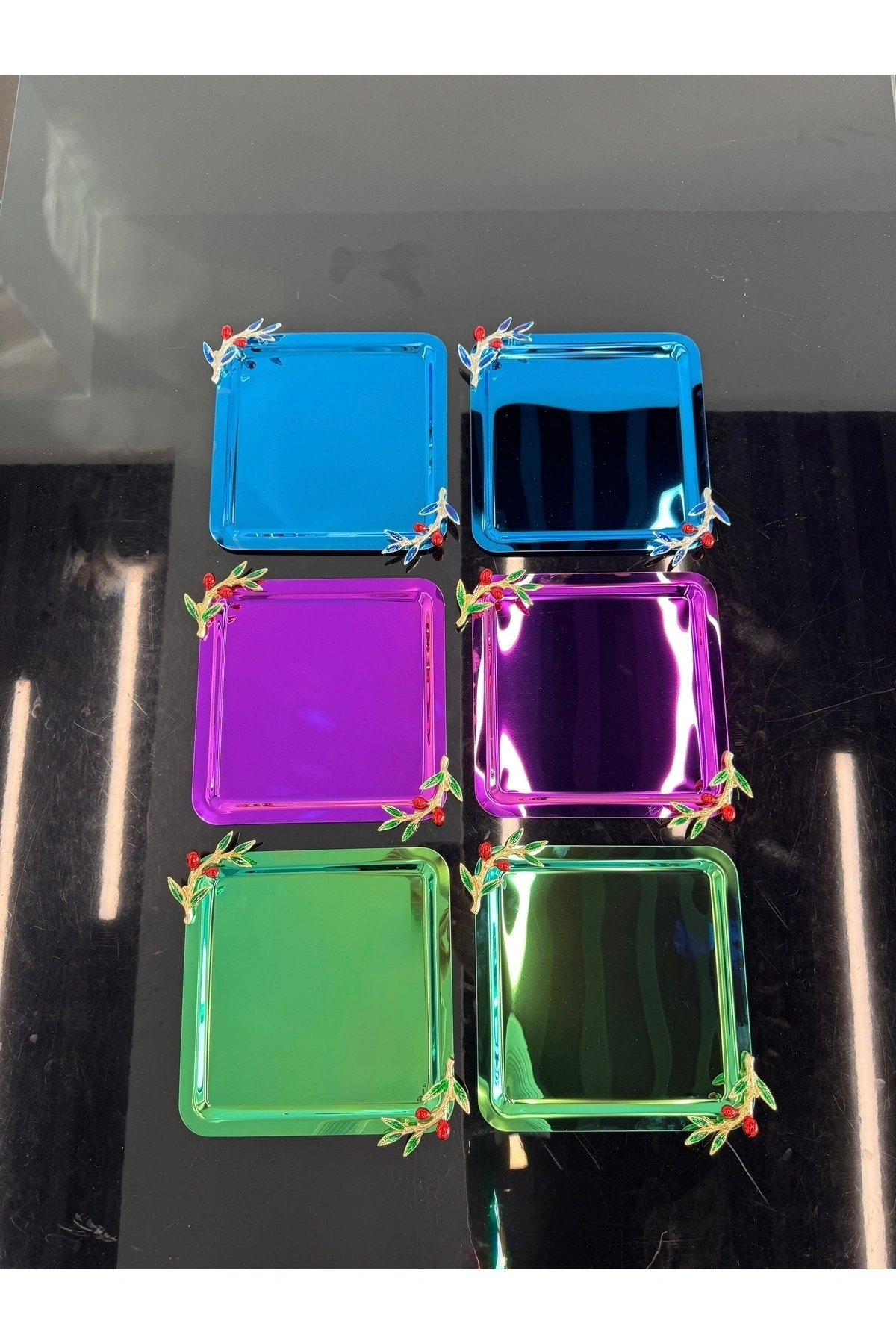 * 201 kaliteli paslanmaz çelikten üretilmiştir.; Paslanmaz özelliği sayesinde uzun ömürlü kullanım sunar ve kolaylıkla temizlenebilir.; * Ürünlerimiz 6 Adet Tepsi olarak gönderilmektedir.; * Farklı renk seçenekleri ile sunulan bu tepsiler boya yöntemi ile değil, Pvd ile kaplanmıştır.; * 21x21 cm ölçüleri, sunumlarınızı rahatça sunabileceğiniz bir alan sağlar.; * Şık tasarımı, hem günlük hem de özel davetlerde göz alıcı sunumlar yapmanıza yardımcı olur.; * Doğru temizleme yöntemi, paslanmaz çeliğin yapısı ile birleştiğinde uzun süre kullanım sağlanmaktadır * Ürünlerimizi kullanırken kimyasal ve etken madde temasından kaçınınız.; Optik bir bez yardımıyla ürünlerimizi kolayca silip temizleyebilirsiniz Kahve Sunum Tepsisi- Tepsi- Renkli Tepsi- Çay Tepsisi- Yuvarlak Tepsi- Kare Tepsi- Kulplu Tepsi- Nişan Tepsisi- Sunum Tepsisi -Paslanmaz Çelik- Söz tepsisi- Sini